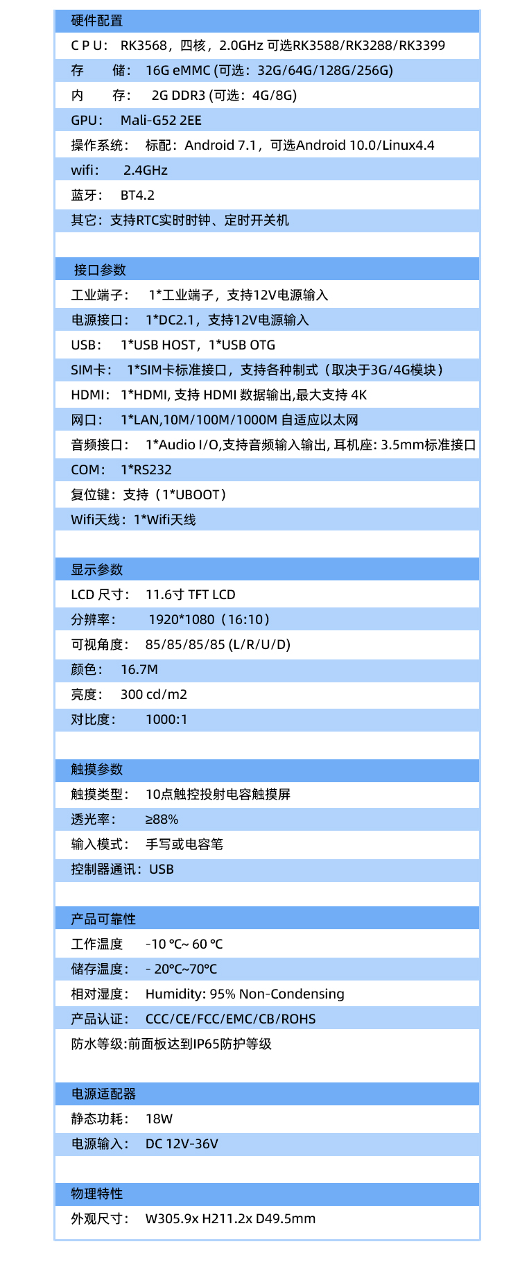 | CPU | RK3568,四核,2.0GHz |