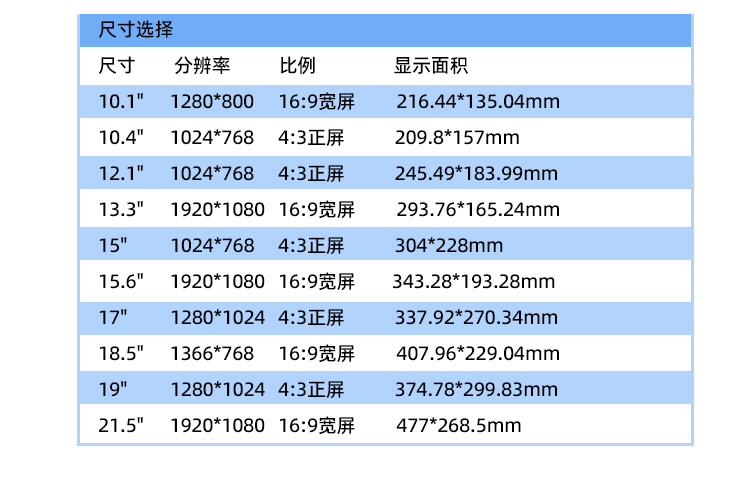 | 屏幕面板 | 工控A規(guī)屏 TFT面板 |