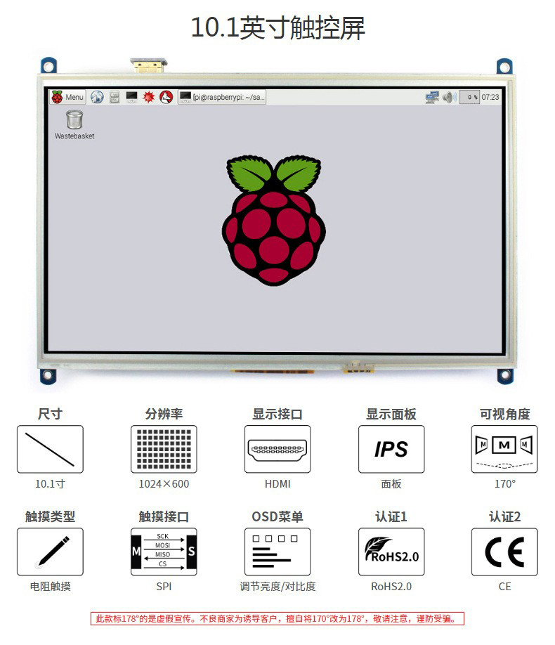 樹莓派10.1寸電容觸控顯示屏HDMI接口1024*600分辨率